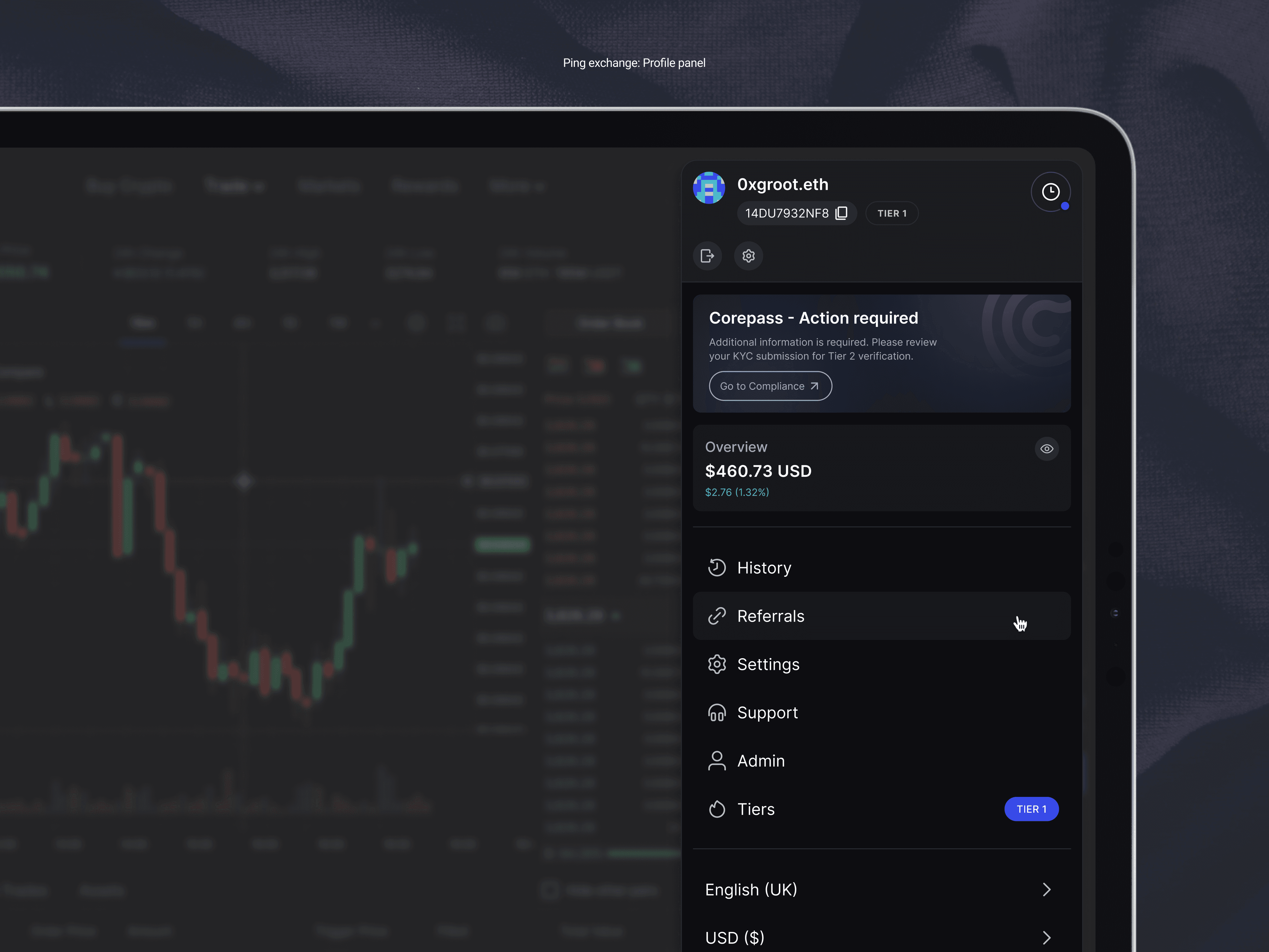 Ping Exchange is a cryptocurrency trading platform that allows users to trade digital assets across multiple trading pairs. It combines centralized exchange functionality with decentralized blockchain infrastructure, while supporting peer-to-peer (P2P) trading. The platform also integrates identity verification and anti-money laundering (AML) compliance through the CorePass system to ensure secure and compliant transactions.