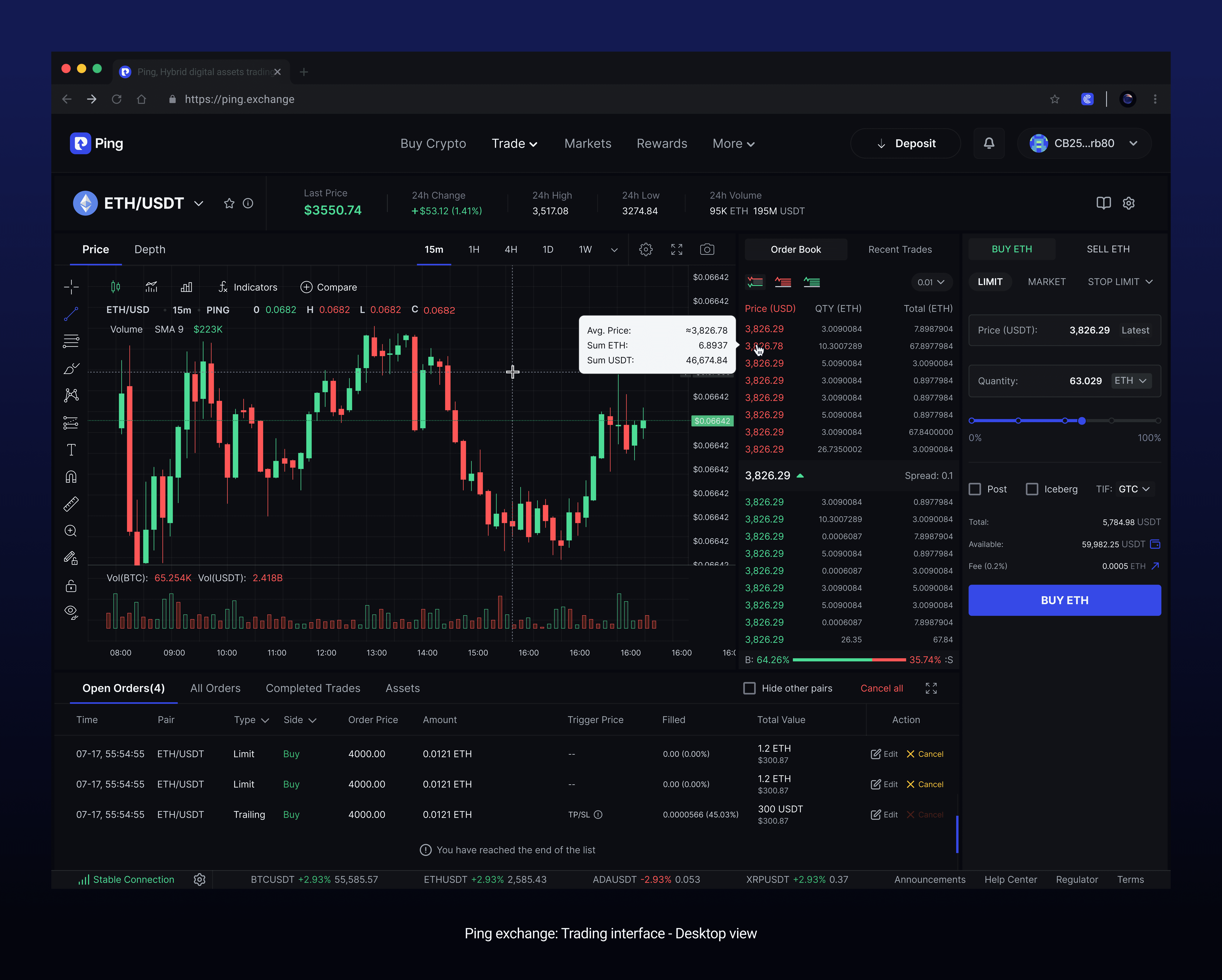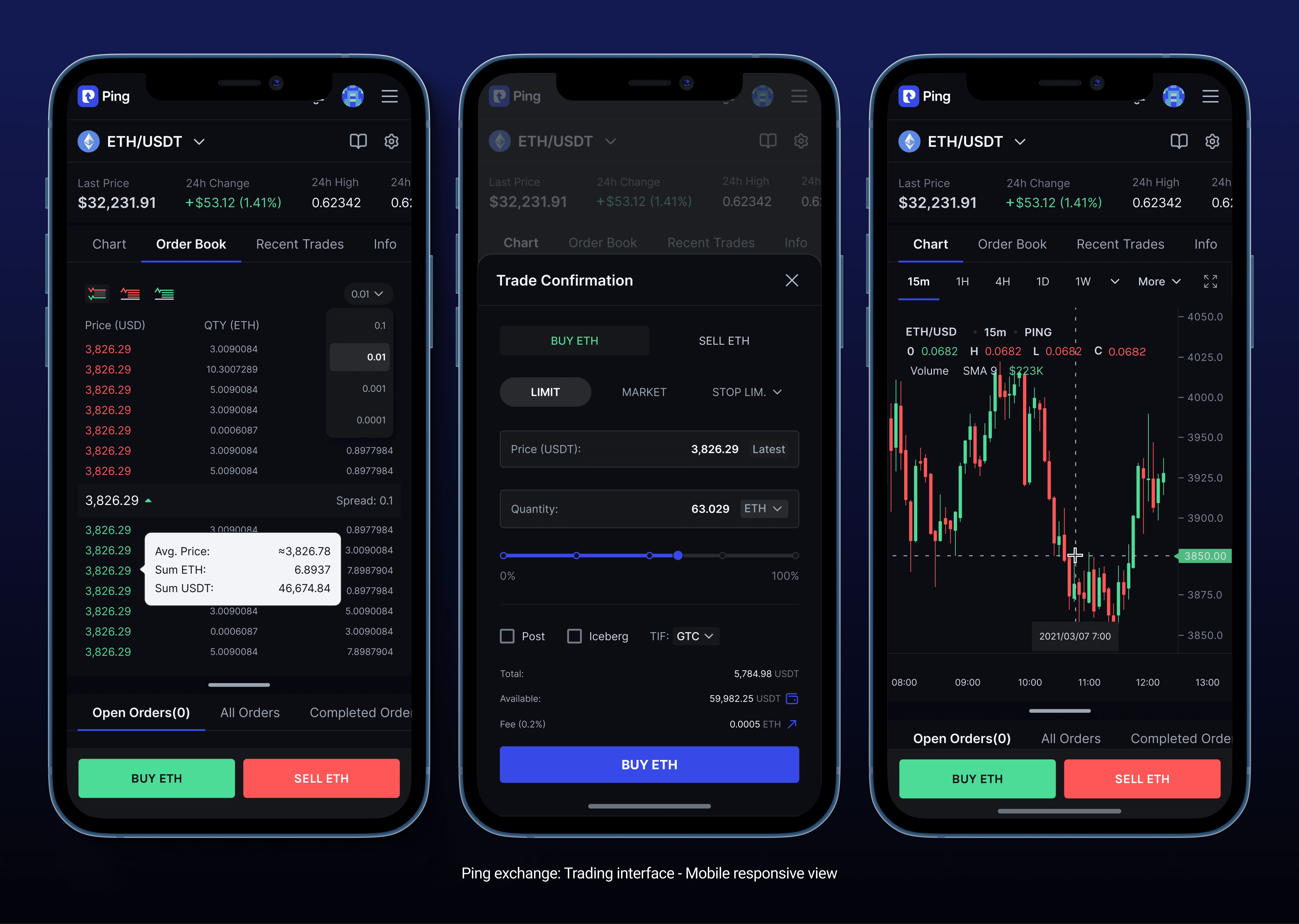 By redesigning the trading interface from the ground up, Ping Exchange now offers a professional, modern trading experience. The new design provides clear feedback mechanisms, supports both beginner and advanced traders, and maintains functionality across desktop and mobile without sacrificing depth or usability. Traders can now execute with confidence, access the tools they need, and manage their positions effectively, all within an interface that feels both familiar and refined.